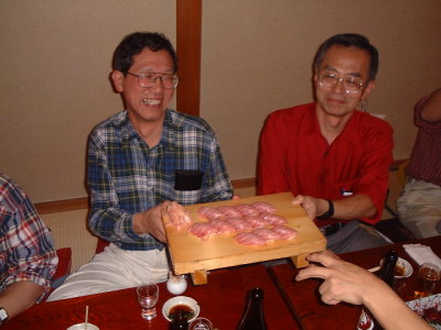 | 次回の浅草ふぐ大会のLISTを取っています | お約束の絶品大トロにぎり! |